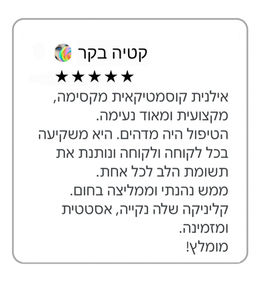 אבל עבורי, זה הרבה מעבר לטיפול אסתטי. זו הזדמנות אמיתית לשפר את ההרגשה שלך עם עצמך. כמי שחוותה בעצמה בעיות עור, אני יודעת כמה זה משפיע ולכן אני כאן, כדי לעזור לך להרגיש יפה, בטוחה ושלמה עם עצמך.
